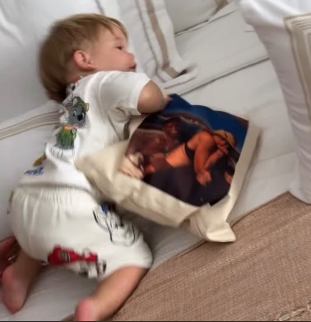Virginia Fonseca usa almofada estampada com foto de Vini Jr.