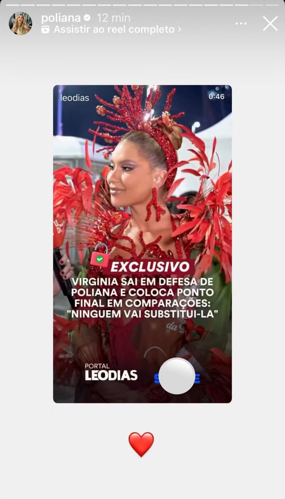 Em entrevista ao Portal Leo Dias, Virginia disse que um fã-clube teria alimentado comparações entre Poliana e Fernanda. “Eu não cheguei a conversar com a Poli porque ela não falou nada comigo. Isso acontece na internet não só com a Poli, mas com todo mundo. Eu acredito que a Poliana é a avó das crianças e ninguém vai substituir ela nesse posto”, afirmou.